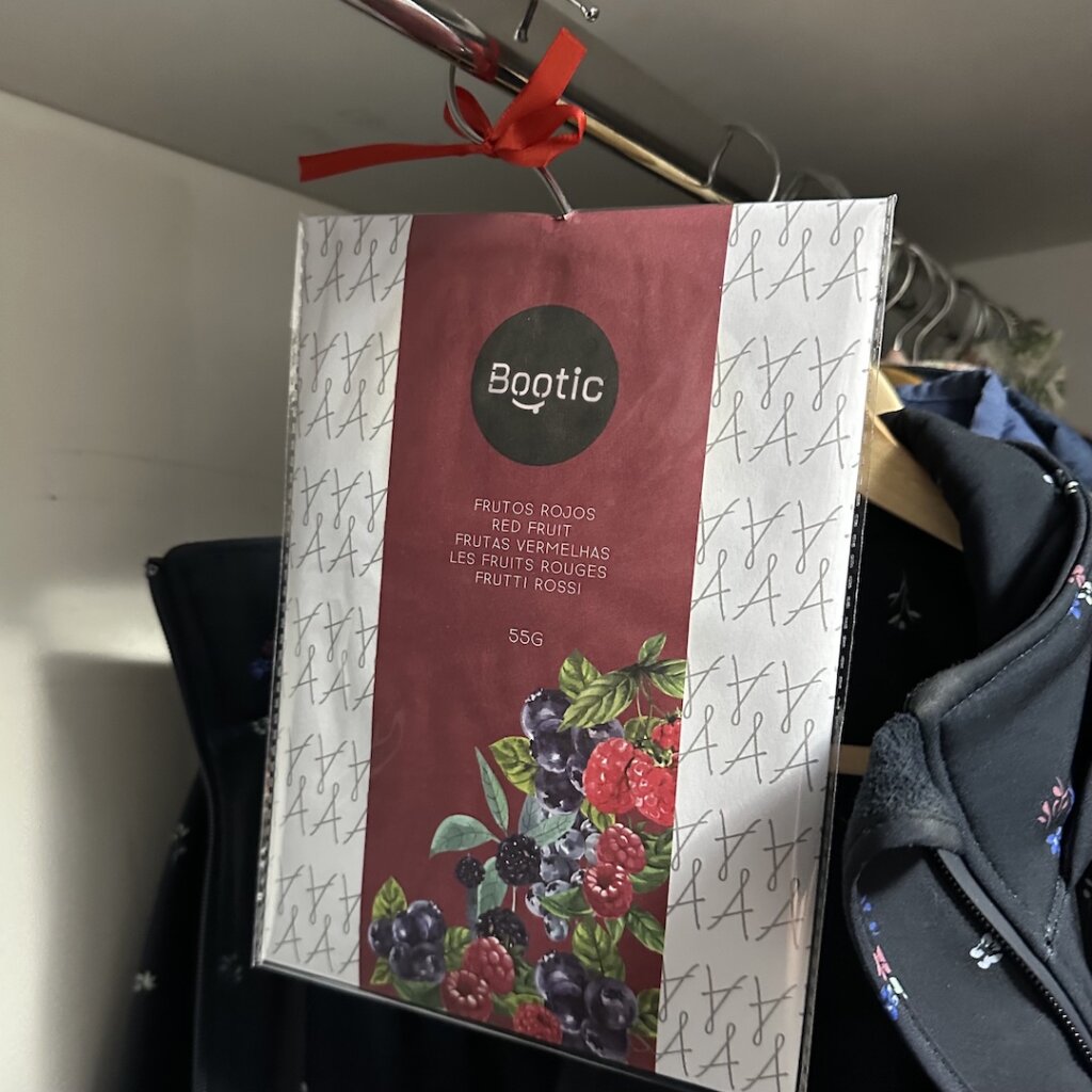 Odorizant tip saculet parfumat Bootic, pentru dulap, cu umeras, XXL, cu aroma de Fructe Rosii, 55 grame